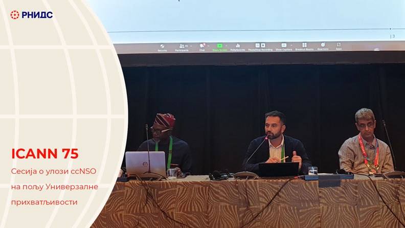What is the role of the ccNSO in relation to Universal Acceptance and should this ICANN body become more actively involved in the discussion? This was the topic of a session chaired by Dejan Đukić, Director of the Serbian National Internet Domain Registry Foundation (RNIDS), during the ICANN 75 annual general meeting. Another of the panelists was Dušan Stojičević, member of the RNIDS Board of Governors, representing the company Gransy, with Žarko Kecić, RNIDS Chief Technical Officer also taking part from the audience.