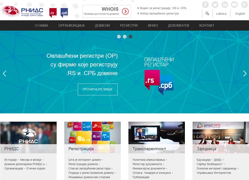 The Serbian National Internet Domain Name Registry Foundation (RNIDS) has launched the third version of its site as it keeps its Internet presence in step with trends and with the best practices of national Internet registries. At prod.rnids.beeloc.rs and прод.рнидс.итцентар.срб visitors can access 30% more content than before, with a clearer structure and new mobile-friendly site design. The new site means that Internet users in Serbia can access a range of information on Internet domains not available elsewhere, more quickly and more easily.