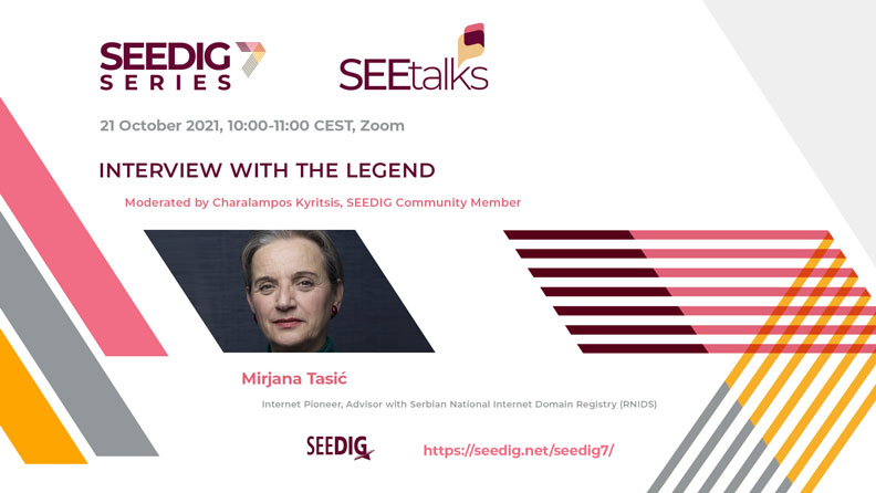 Razgovor SEEDIGtalk „Intervju sa legendom“ realizuje se u okviru SEEDIG7 serije događaja koje tokom ovde godine organizuje SEEDIG (South Eastern European Dialogue on Internet Governance), podregionalna inicijativa Foruma za upravljanje internetom, koja nastupa kao otvoren, neformalan prostor za dijalog i saradnju u pogledu upravljanja internetom i digitalnim politikama između zainteresovanih strana iz Jugoistočne Evrope i susednih područja.