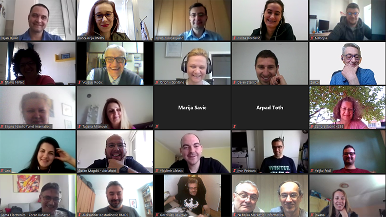 Vebinar za ovlašćene registre Fondacije „Registar nacionalnog internet domena Srbije“ (RNIDS) na kom su predstavljeni novi Administrativni i tehnički uslovi rada ovlašćenih registara RNIDS-a održan je 29. aprila putem platforme Zum.