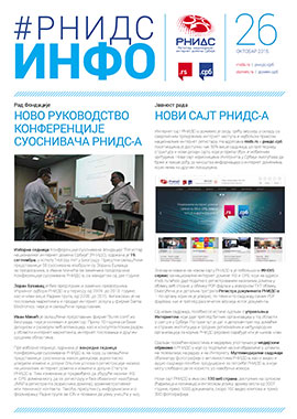 U broju 26 internog informatora "RNIDS info" nalazi se pregled dešavanja u RNIDS-u, domaćoj internet zajednici i svetu tokom trećeg kvartala 2015. Konferencija suosnivača RNIDS-a dobila je novo rukovodstvo, a pušten je u rad i novi internet sajt RNIDS-a.