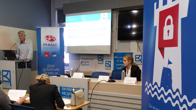 Bezbednost i zaštita poslovanja na internetu bila je tema sastanka održanog 20. septembra u prostorijama Privredne komore Beograda tokom kog je izlagao Žarko Kecić, rukovodilac Sektora IKT usluga Fondacije „Registar nacionalnog internet domena Srbije“ (RNIDS), a kom su prisustvovali predstavnici preduzeća koja posluju u finansijskom sektoru. Žarko Kecić je ukazao da je finansijski sektor ‑ banke, osiguravajuća društva i dr. u posebno delikatnom položaju jer ne rukuje samo ličnim podacima svojih klijenata, već treba da garantuje i bezbednost njihovih digitalnih novčanih transakcija. Pomenuo je da je samo u Velikoj Britaniji ukupan finansijski gubitak uzrokovan hakerskim napadima 15 milijardi funti na godišnjem nivou. Bankarski sektor, bez obzira na ulaganje u bezbednosnu infrastrukturu, nije pošteđen udela u ovakvim gubicima, o čemu svedoče izveštaji o prošlogodišnjim napadima čija je žrtva bila i najveća brazilska banka pri čemu su kompromitovani podaci stotina hiljada klijenata banke. Izazovi sa kojima se finansijski sektor suočava tiču se zaštite centralnih sistema i obezbeđivanja sigurnih transakcija klijenata. I dok za zaštitu centralnih sistema stoji na raspolaganju veliki broj uređaja i alata (firewall, IDS/IPS, WAF, opcije za bekap podataka itd), komunikacija sa klijentima i njihove transakcije predstavljaju veliki izazov. Najveća bezbednosna pretnja je upravo elektronska saradnja sa klijentom. Najveći izazov je uspostavljanje mehanizma za utvrđivanje...